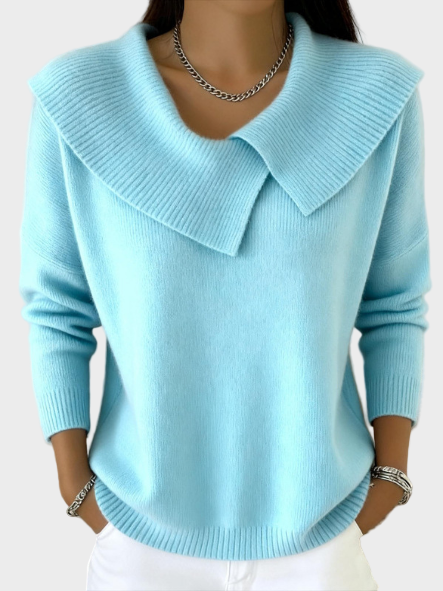 Dekorativni gub na mehkemu ovratniku elegantno okvirja dekolte, medtem ko topla in mehka pletenina pokriva telo z lahkim občutkom udobja. Nežni zimski poudarki dodajajo privlačnost, ne da bi bili pretirani. To je oblačilo, ki ne sledi le modnim smernicam, temveč dodaja tvoji garderobi brezčasno eleganco.