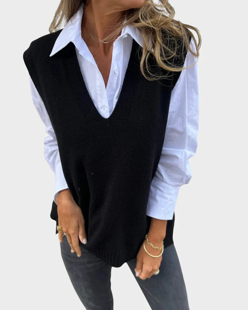 Zasnovan z laskavim V-izrezom za brezčasni videz.