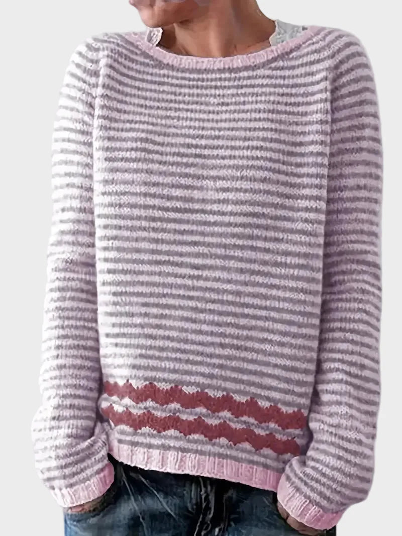 Izstopajte s tem črtastim in cik-cak puloverjem