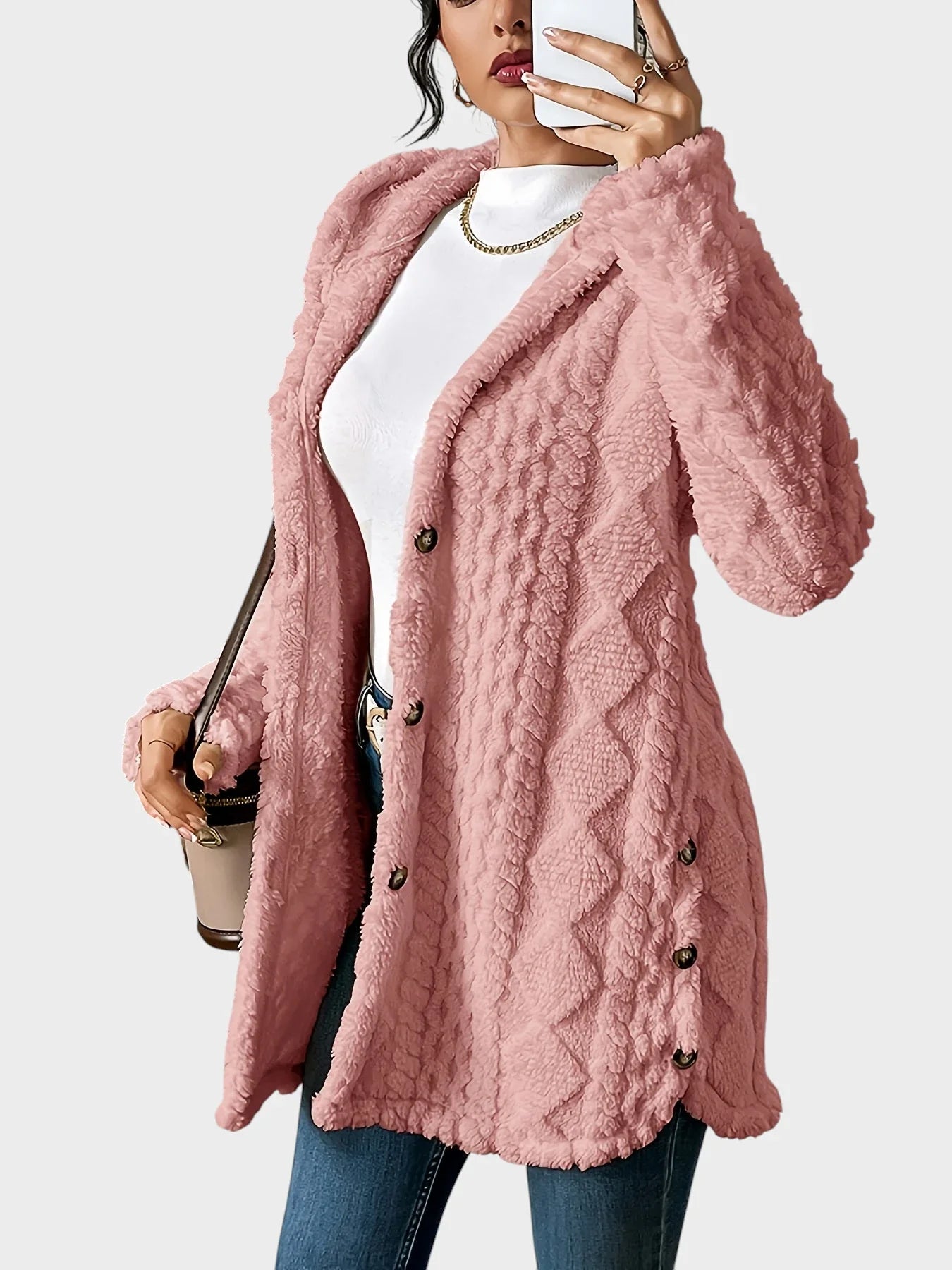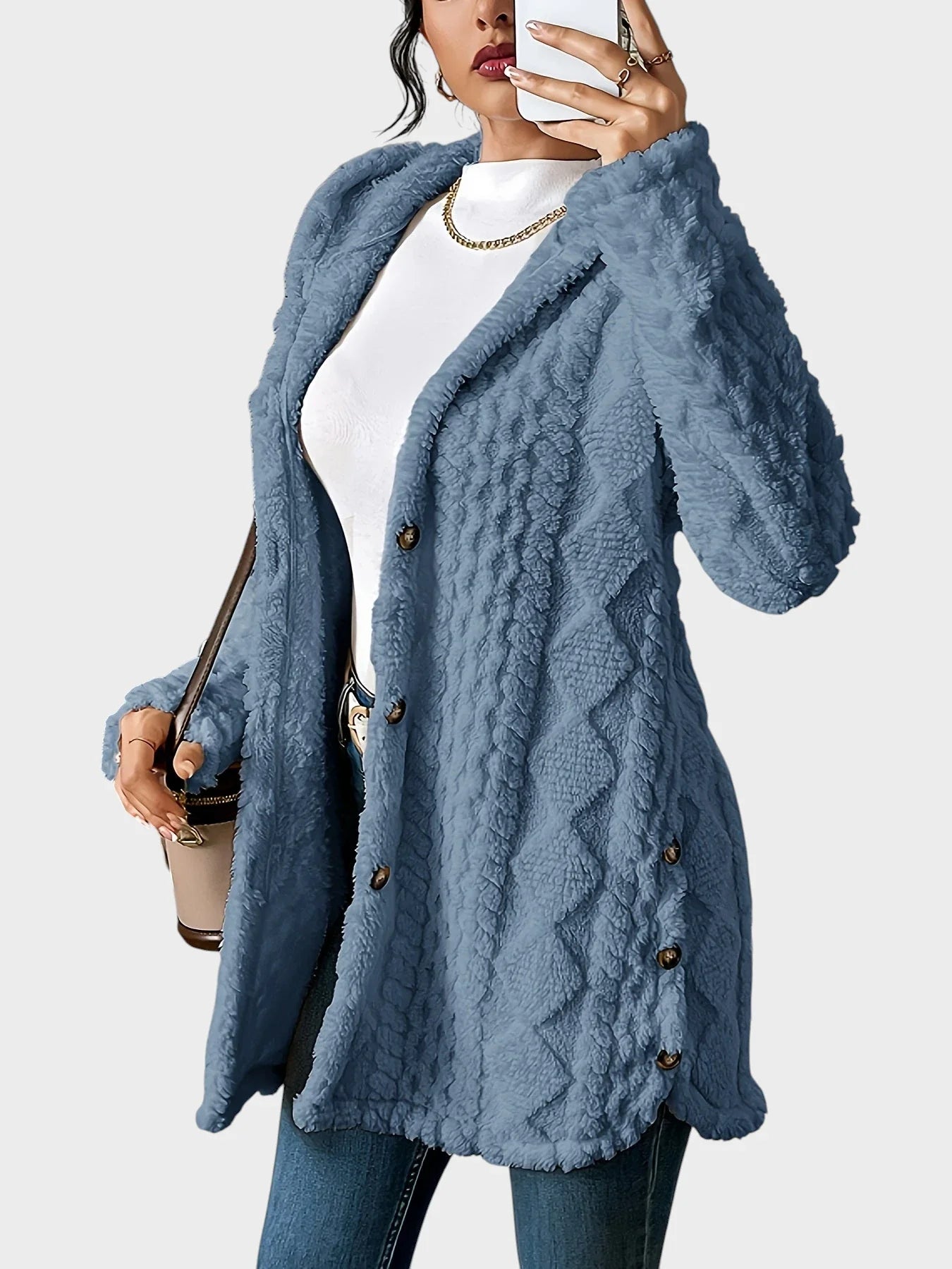 Vesna - Plišast kardigan s kapuco