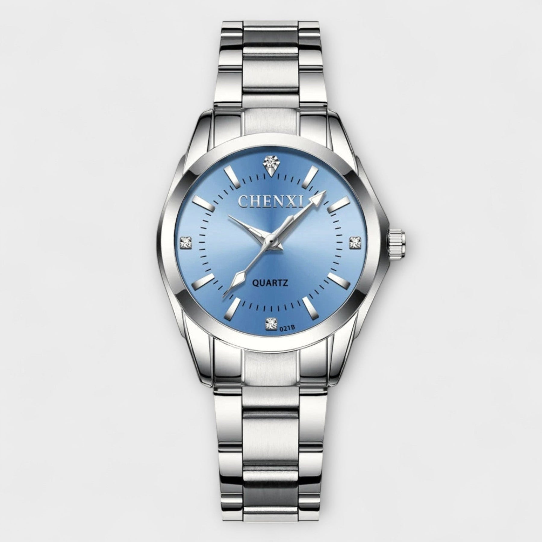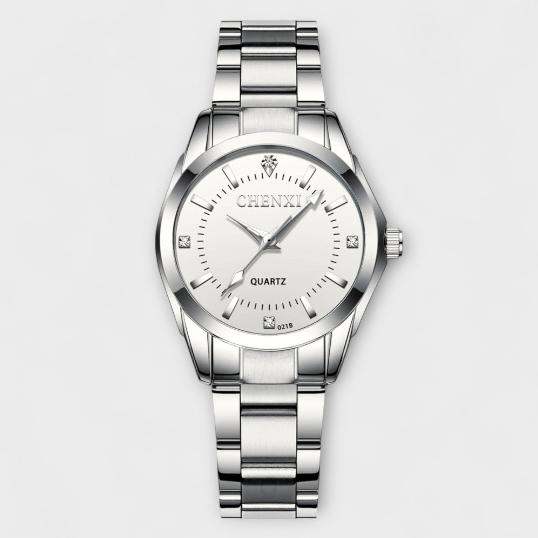 Poliran jekleni kazalec in minimalistične podrobnosti poudarjajo vašo eleganco, ne da bi preobremenili vaš videz. Diskretno kvarčno gibanje in trpežen pas zagotavljata udobje in stil čez ves dan.