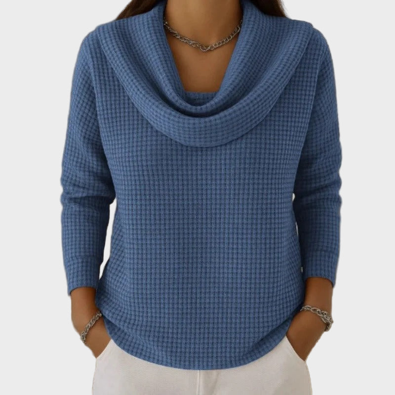 Mia – Topel Vaflaste Pulover z Elegantnim Ovratnikom